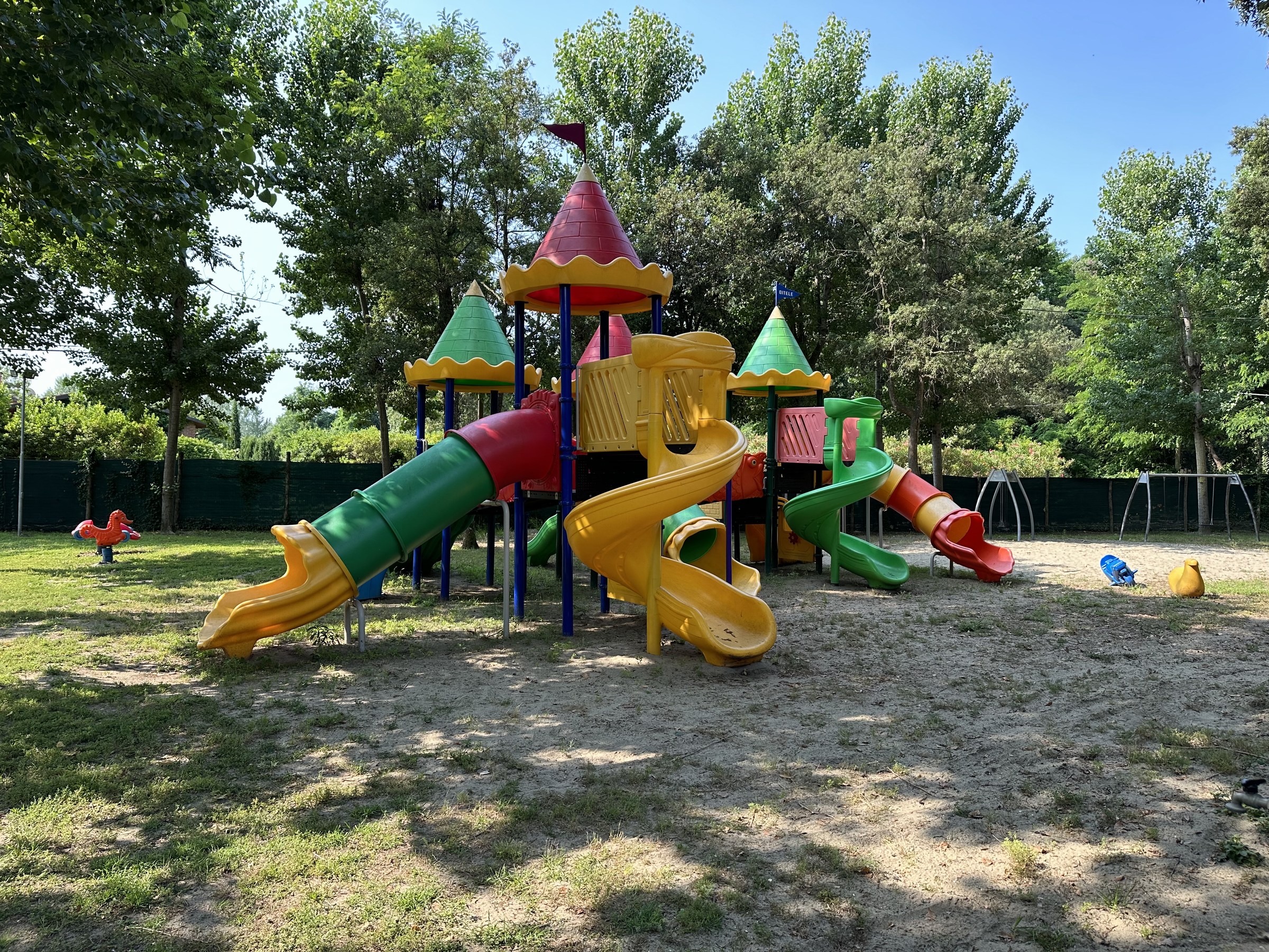 Il nuovo parco giochi interno farà divertire i vostri bambini. E' presente un mega castello con scivoli, una sfera per arrampicata, altalene e molle oltre ai campi di calcetto e pallavolo. Il fondo è stato mantenuto a sabbia per evitare traumi nelle cadute.
